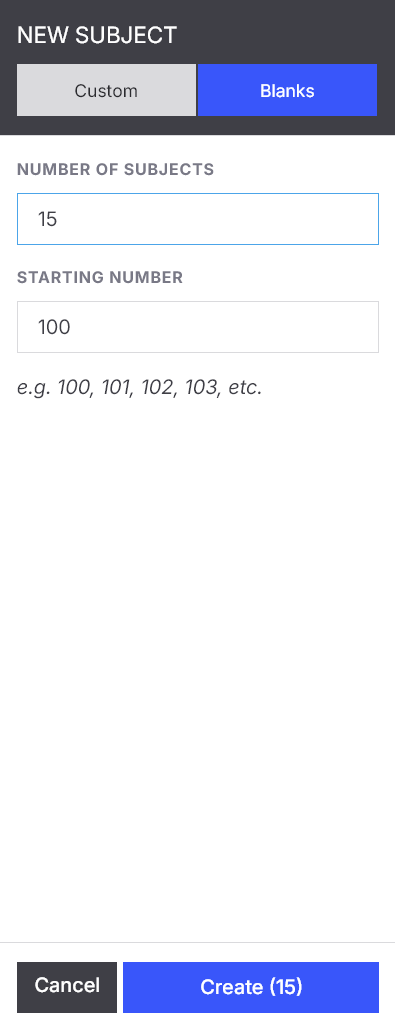 Number of blank subjects you want to create (e.g., 10, 20, 50).