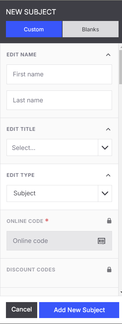 Sometimes on picture day or during an event, unexpected subjects show up who weren't pre-registered. To stay flexible, you can create blank subjects in your job ahead of time or as needed.